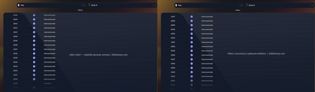Dari Satu Musim Gagal Menjadi Dinasti Abadi di Soccer Manger